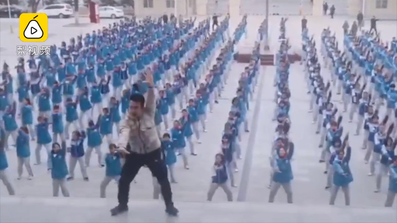 在曝光的影片中,可以看到廣場上排列整齊的學生們,身穿藍色校服,隨著音樂一下,立刻跟隨前方的帶舞者開始手舞足蹈,所跳的舞步依稀能看出都是網紅們經常跳的風格,全場動作整齊劃一。