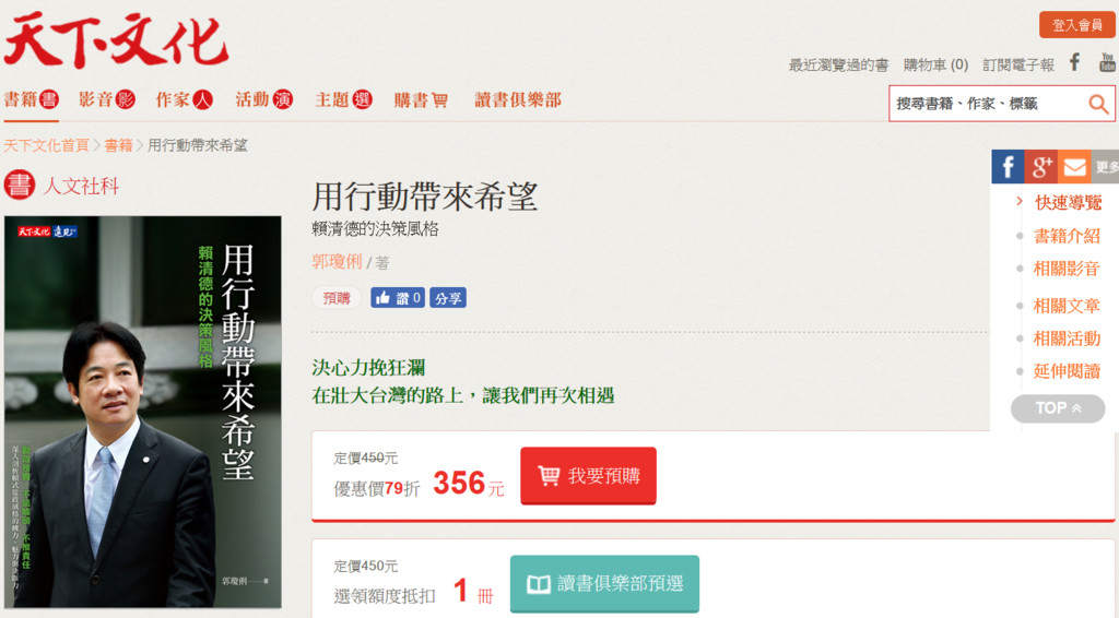 前行政院長賴清德登記民進黨總統初選,正面迎擊爭取連任的總統蔡英文,為政壇丟下一顆震撼彈。如今賴清德的新書「用行動帶來希望:賴清德的決策風格」在網路書店悄悄上架,連「宅神」朱學恒都說,「保密到家有夠突然,厲害厲害」。