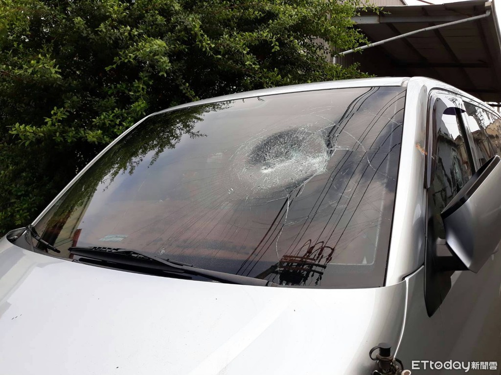 ▲▼孫男隨機砸毀路旁5車,造成擋風玻璃、車窗等處碎裂。