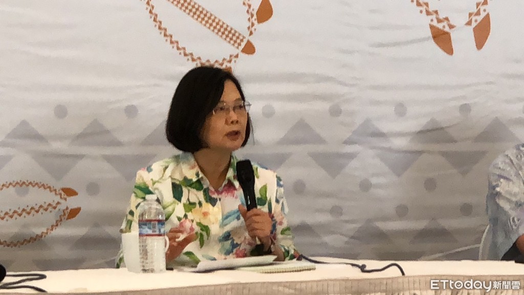 ▲蔡英文與隨團記者茶敘,回應相關時事。(圖/記者陶本和攝)
