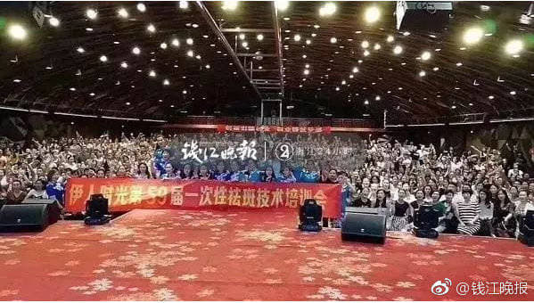 ▲ 「伊人時光」每個月都會專門召開大型的「洗腦會」,說服大量有除斑困擾的民眾加盟 。(圖/翻攝自錢江晚報微博)