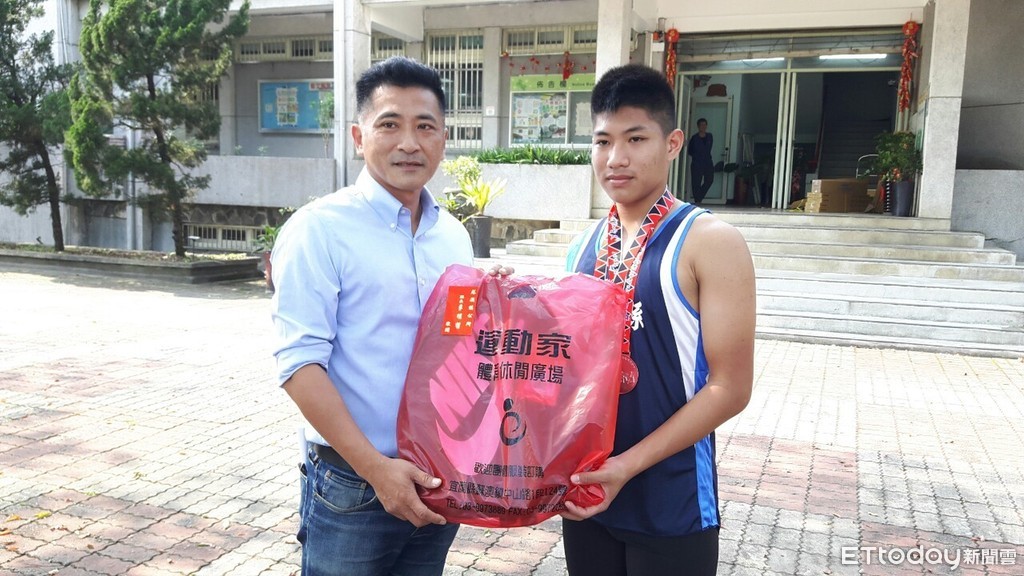 ▲▼宜蘭蘇澳國中9年級體育班潘峻靖,在「2019年全國原住民族運動會」中,勇奪1銀1銅,蘇澳鎮長李明哲致贈獎品以資鼓勵。(圖/記者游芳男翻攝,下同)