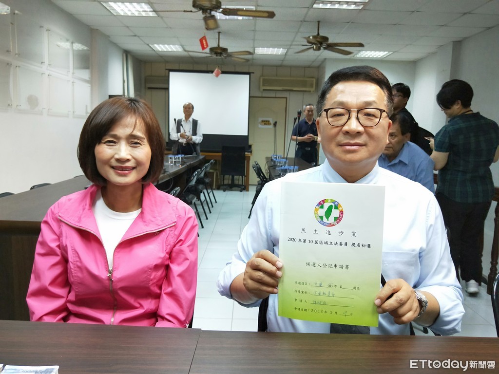 ▲▼民進黨立委陳歐珀要「接地氣、顧生活、拚建設」,29日下午4時許,在太太徐慧諭的陪同下,完成登記參加宜蘭立委黨內初選。(圖/記者游芳男攝,下同)