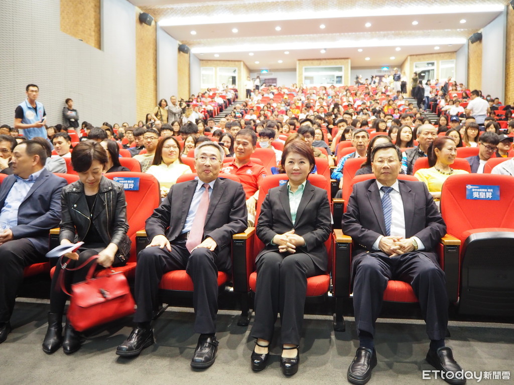 ▲盧秀燕到亞洲大學演講,自謙是百年難得一見的普通人才。(圖/記者鄧木卿攝)