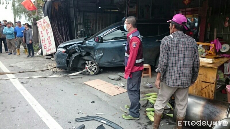 台東鹿野鄉景豐路31日下午3時許發生車禍,一輛休旅車疑似打滑,先撞民宅前的水果攤,再往民宅內撞去,造成擺攤的婦人及路人無端遭波及撞飛,猶如打保齡球般。警消表示,現場患者共計7名,其中2名傷勢比較嚴重的人送往關山慈濟醫院急救,至於詳細肇事原因還有待相關單位釐清。
