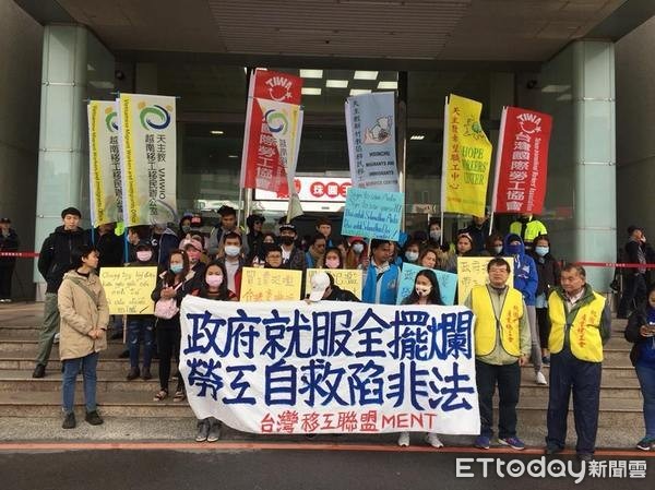 台灣國際勞工協會今天發動的抗議活動,拿著「政府就服全擺爛、勞工自救陷非法。」字樣的醒目布條,於市府大門前抗議一個多小時後,由市府勞動局外勞科出面收受陳情書後結束。台灣國際勞工協會指出,台灣的外籍移工約有75萬人,但目前台灣政府沒有提供移工就業服務管道,致使要轉換雇主的移工只能「自力救濟」,可能是向朋友打聽,或是上社群網站找工作機會。