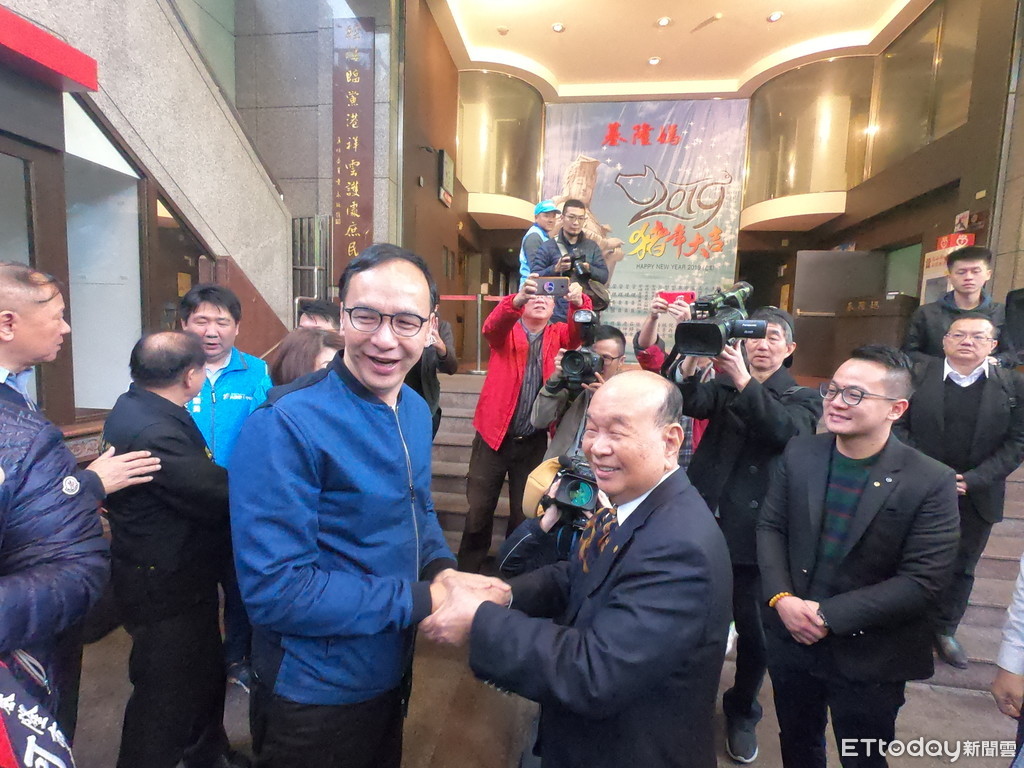 ▲前新北市長朱立倫與基隆慶安宮主委童永相見歡。(圖/記者徐斌慎攝)