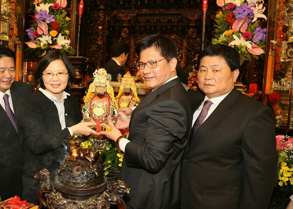 ▲蔡英文與林佳龍前往大甲鎮瀾宮參拜。(圖/民進黨台中市黨部提供)