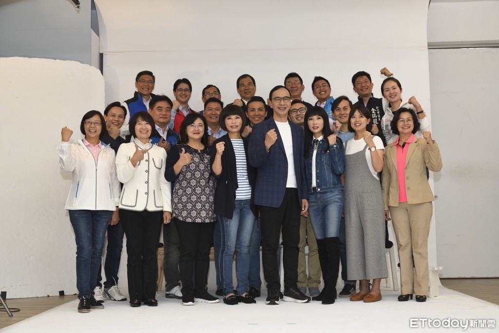 ▲朱立倫與國民黨籍新北市議員拍選舉宣傳照。(圖/記者湯興漢攝)