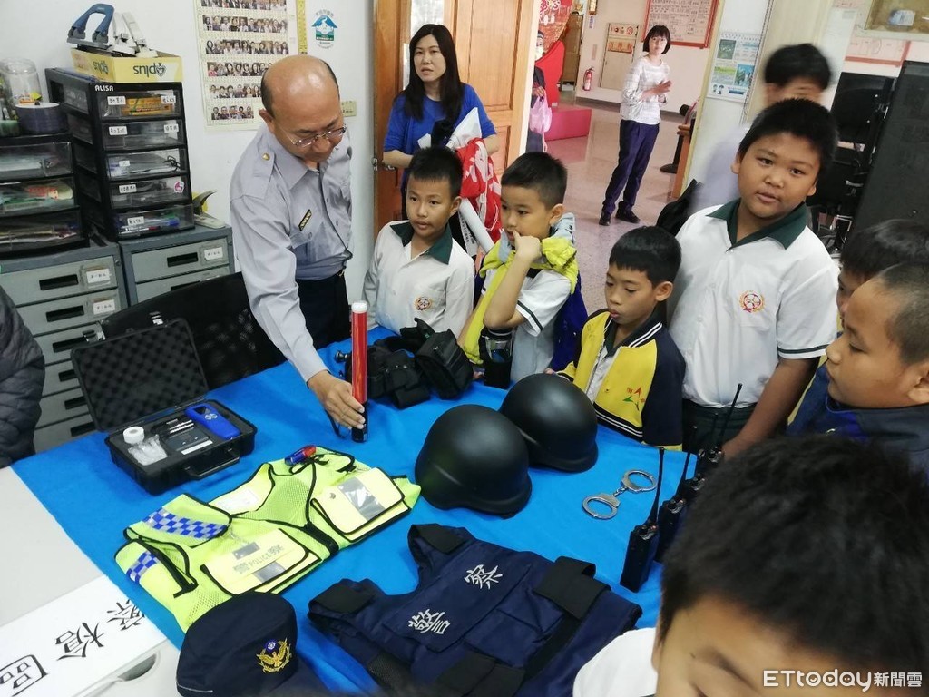 屏東縣恆春國小老師帶著學童們參訪恆春警分局偵查隊與建民派出所進行戶外教學,員警們熱情介紹反毒、反霸凌、165反詐騙專線、交通安全宣導暨警察裝備,學童們看見警用裝備,都想體驗,在穿戴警察裝備後個個興奮不已。