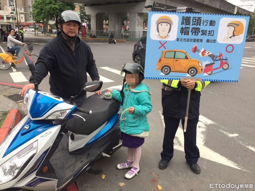 對此新北交大統計,近年機車死亡車禍人數從105年的73人、106年的67人,到了去年卻攀升到了77人,進一步分析發現,有些機車騎士、乘客雖依規定戴上安全帽,但安全帽扣卻未繫緊,容易導致事故發生時,安全帽也跟著噴飛,無法保護頭部,因此才發布「護頭專案」,配合新北交通大執法期間以口頭、舉牌柔性宣導,以強化用路人的頭部防護。
