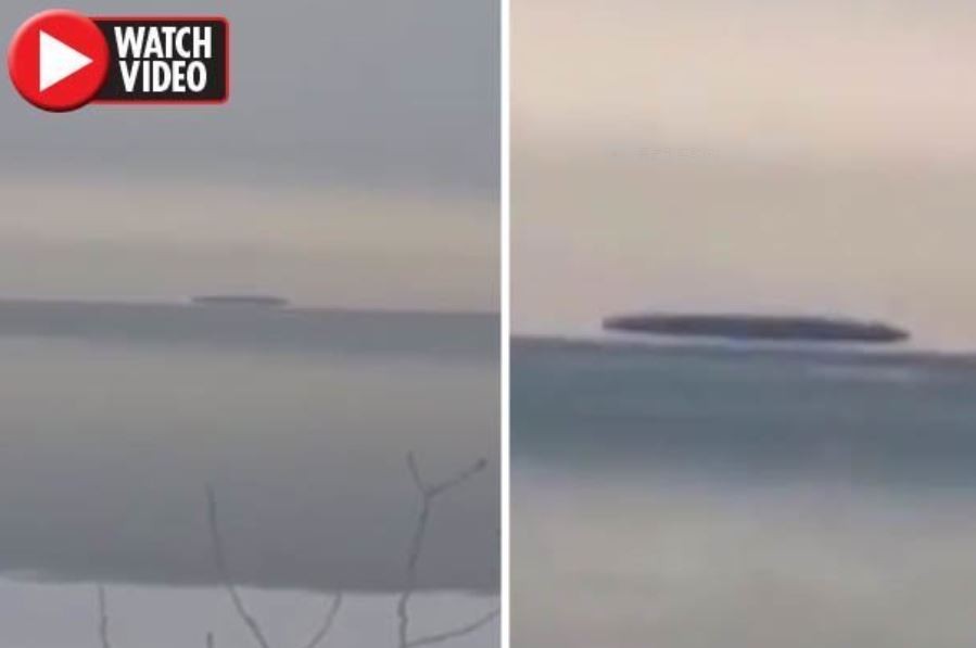 畫面顯示,一個神秘黑色物體在橫跨加拿大安大略省和美國3個州的伊利湖上空盤旋。它呈現細長形狀,當時似乎是在水面上飛行,該物體的下方也出現倒影。