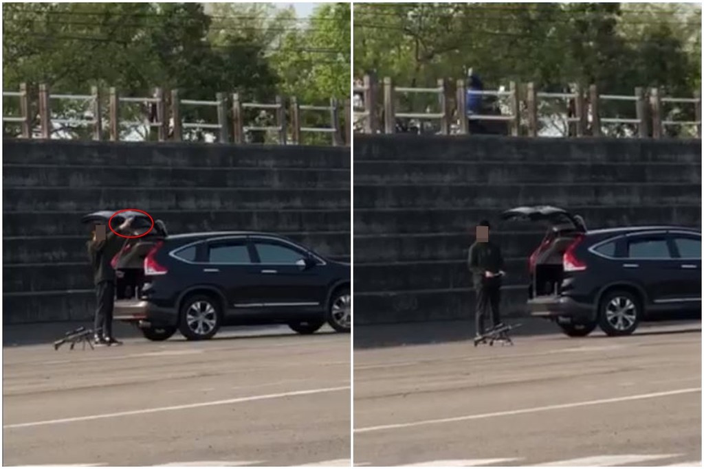 從短短42秒的影片中可看到,一名身穿黑色上衣、黑色長褲的男子站在後車廂大開的黑色轎車後,手持空氣槍連續朝前上方射擊53槍,一旁地上還放著一把長槍,雖然從影片中無法確認男子前方是否有人經過,但仍有安全上的疑慮。目擊這一切的原PO將影片PO上網直言,「河濱公園是大家運動與休閒的地方,怎麼會有人在這玩氣槍掃射,誤傷他人或小孩該如何,這裡不是射擊場」。