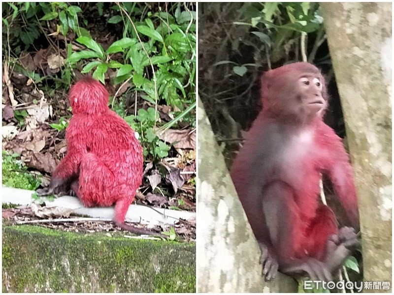 遊客呂政霖表示,那時候在園區的入口處看見有10多隻猴群經過,其中有一隻全身紅通通的猴子落單,原本以為是新品種,沒想到仔細一看發現牠竟被潑紅漆。