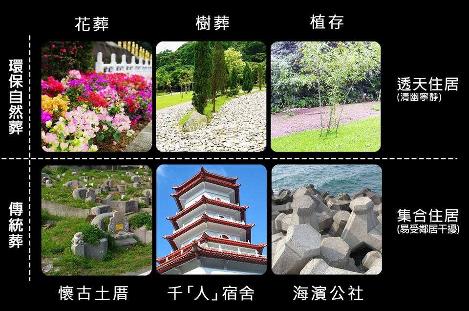 許多民眾趁著清明連假返鄉掃墓祭祖,緬懷先祖列宗。內政部為了宣傳「環保自然葬」,5日上午也在臉書粉絲專頁貼出一張圖片,解析傳統葬和新式花葬、樹葬和植存的差別;該小編在文中寫道,「面對親人離別,還考慮住得『人擠人』的傳統葬嗎?你聽過能讓親人獨享清幽的環保自然葬嗎?」