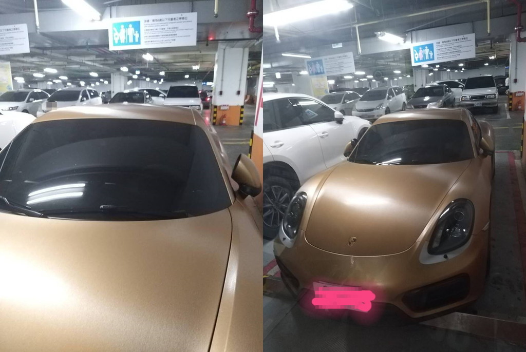 ▼原PO說,保時捷擋風玻璃前沒放親子車位專用識別證。(圖/翻攝爆怨公社)