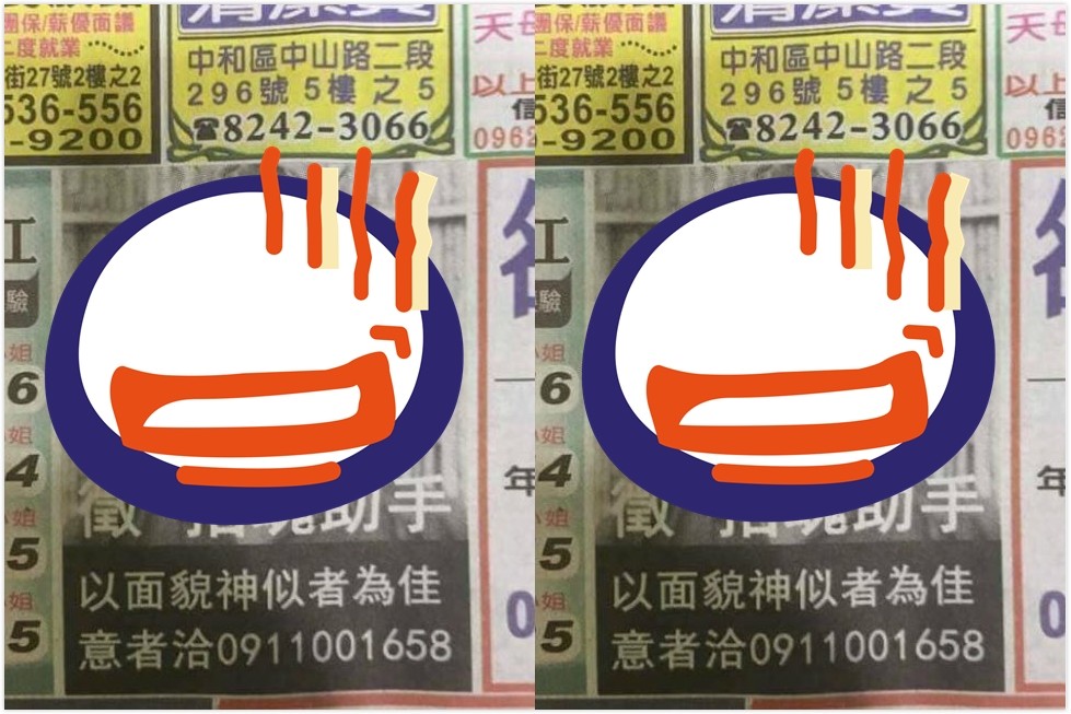網友昨天在「靈異公社」發文,替這則奇葩廣告下註解,煞有其事地說,「因助手卡到陰無法上班,給大家一個機會。」只見照片中的男子頭髮凌亂、雙眼瞪大,且表情僵硬又詭異;令人匪夷所思的是,徵才的人還特別指明,「徵招魂助手,以面貌神似者為佳。」