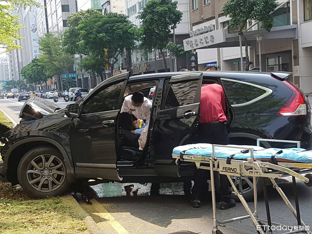 台北市松江路192號8日下午1時許發生車禍事故,一輛黑色休旅車不知何故撞上安全島路樹,巨大撞擊聲讓一旁路人嚇到報警;車上1男1女一度受困車內,所幸救出後意識皆清楚。