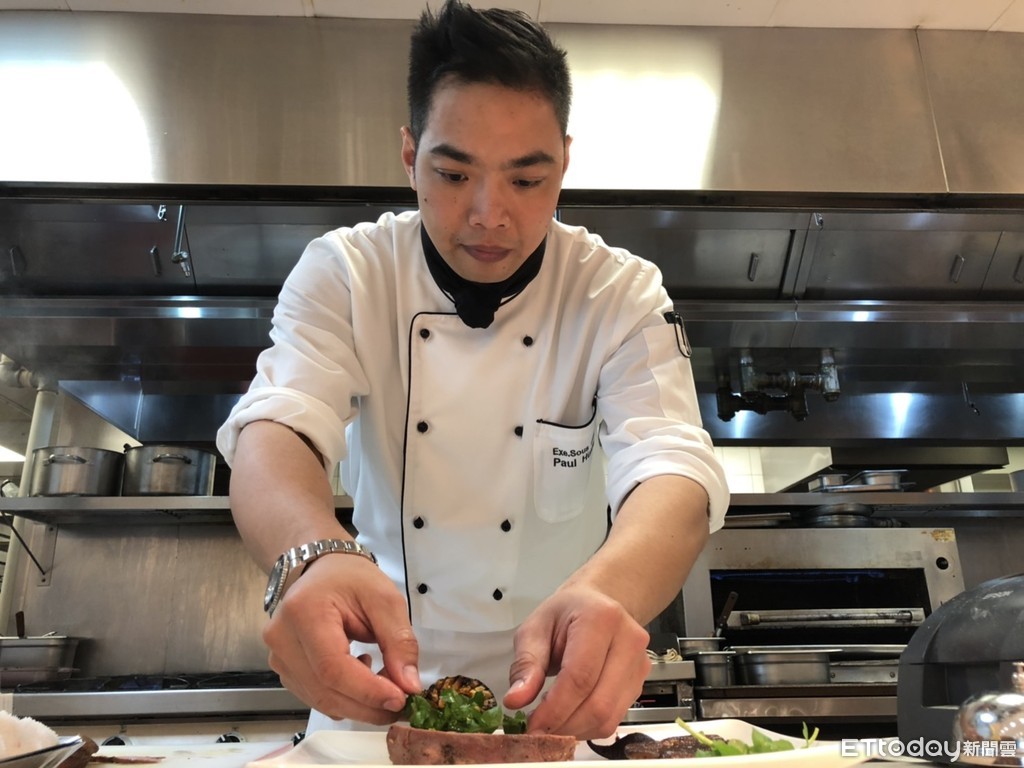 ▲台北六福萬怡酒店西餐行政副主廚黃冠銘(Paul)25歲就當上主廚,他親自做了2道菜 。(圖/記者陳以昇攝,下同)
