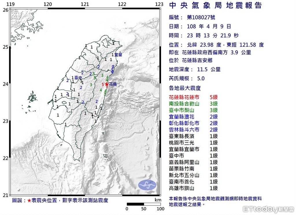 根據中央氣象局地震測報中心資訊,自9日深夜11時起接連發生的兩次有感地震,震央都在花蓮吉安鄉,相當接近,深度都僅約11公里,2起相隔時間不到6個小時,讓花蓮民眾昨夜相當「有感」。
