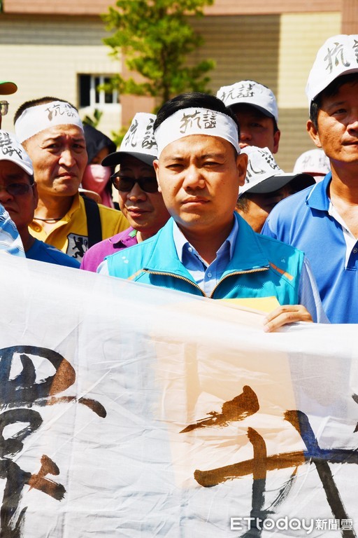 ▲▼民眾頭綁白佈條到公所前抗議。