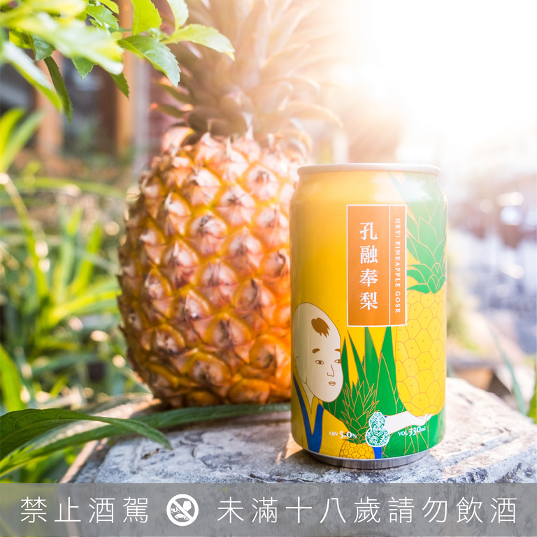 而「孔融奉梨」則是玩諧音梗,用「孔融讓梨」的歷史故事呈現酒標設計,以艾爾啤酒為基底,加入鳳梨果汁、鳳梨果乾、仙渣果、芫荽子等釀造,一開瓶濃郁的鳳梨香立刻爆發,帶點刺激味蕾的明亮微酸感。罐底不外乎也暗藏彩蛋,小小幾個字印著「我喜歡你」,乍看摸不著頭緒,其實是取品名「嘿鳳梨海鹽艾爾」與粵語「喜歡你」(Hei Feng Nei)的諧音。此兩款於7-ELEVEN推出限定優惠,今(10日)起至5月7日指定酒款任選三件85折。