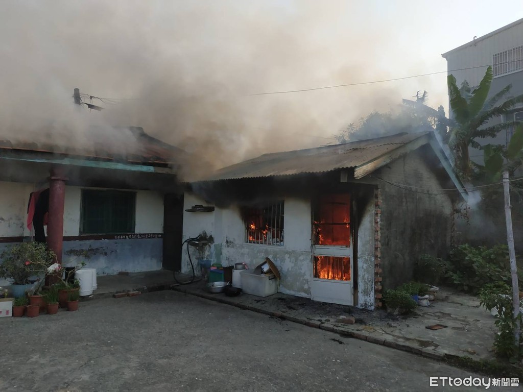 ▲台南市佳里區漳洲里番仔寮上午發生民宅火警,1樓三合院平房起火燃燒,消防局出動消防人車前往搶救,火勢迅速被撲滅,幸無人員傷亡。(圖/記者林悅翻攝,下同)