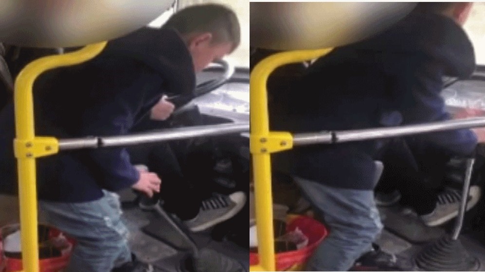 這起誇張事件發生在本月7日,一名乘客拍到,公車駕駛座上,操縱方向盤的人雖然是成年駕駛,但是幫他打檔的人竟然是個8歲小孩。影片可看到,一輛行駛中的公車,卻讓一名8歲男童在駕駛座不停變換排檔,一下往前拉、一下又往後扯,看得其他乘客心驚膽跳,紛紛擔心起自己的安危。