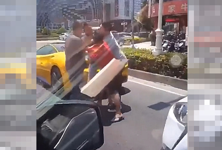 高雄五福圓環發生車糾紛爆全武行!一名法拉利駕駛因行駛途中遇見另輛白色自小客從慢車道切出,因深怕擦撞鳴喇叭示警,但對方卻又追上來「反擊」閃大燈、按喇叭,於是法拉利停等紅燈後,駕駛立即下車與白車駕駛大混戰,一旁的路人拿起手機錄影觀戰,邊拍邊酸「X!開法拉利較秋」,但警方趕到現場時,雙方都已經鳥獸散。