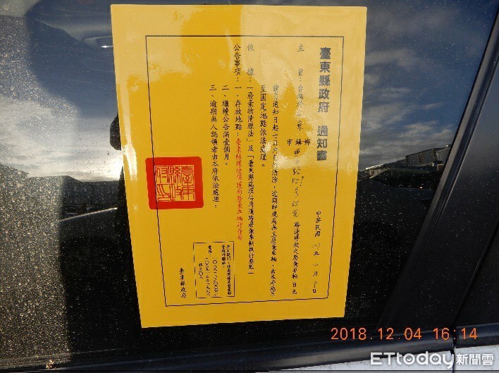 ▲環保局稽查人員針對無牌或無法行駛之廢棄汽(機)車輛,會於車輛上張貼公告7日,若無人處理環保局將排定時間進行拖吊。