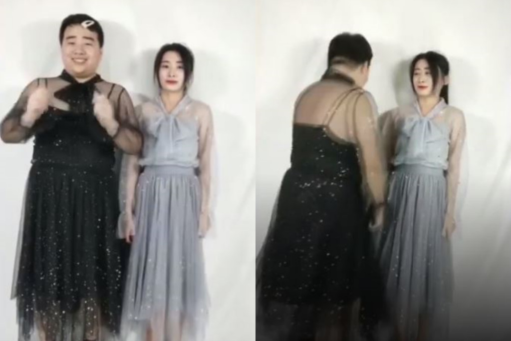 ▲胖胖男友穿上其他女裝。(圖/翻攝自梨視頻)