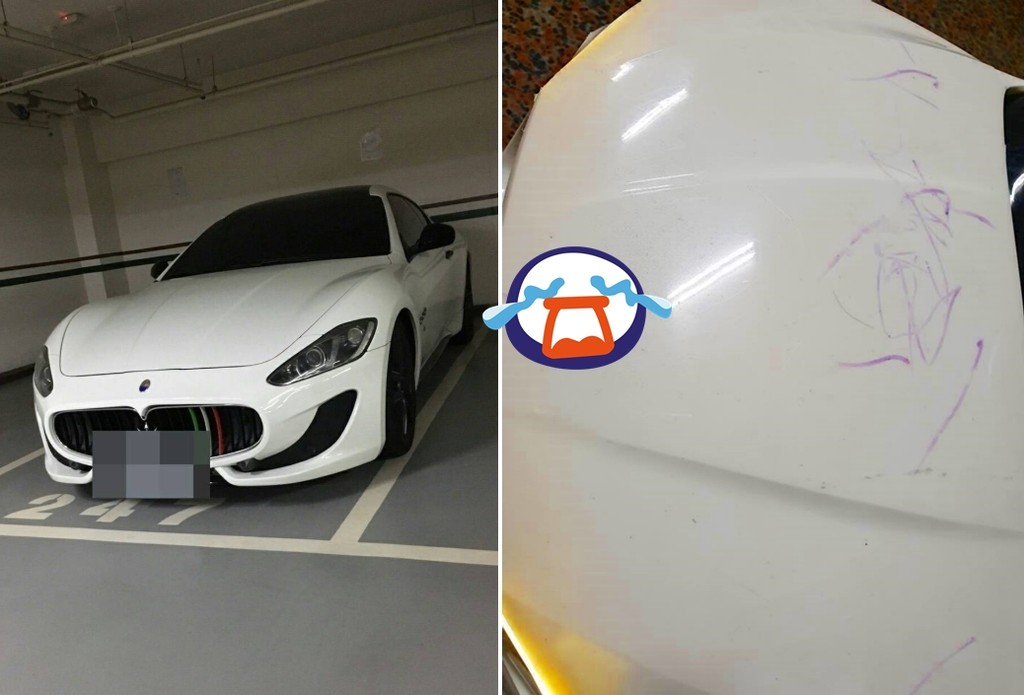 從該名媽媽PO在臉書「爆怨公社」照片可見,瑪莎拉蒂保養極佳,但車蓋上有著狂妄的紫色蠟筆大作,多筆張揚交叉而成,可見兒子小小年紀卻充滿「藝術天分」,不論在哪一個地方,只要靈感來了,都不能阻擋他想畫畫霸氣感。