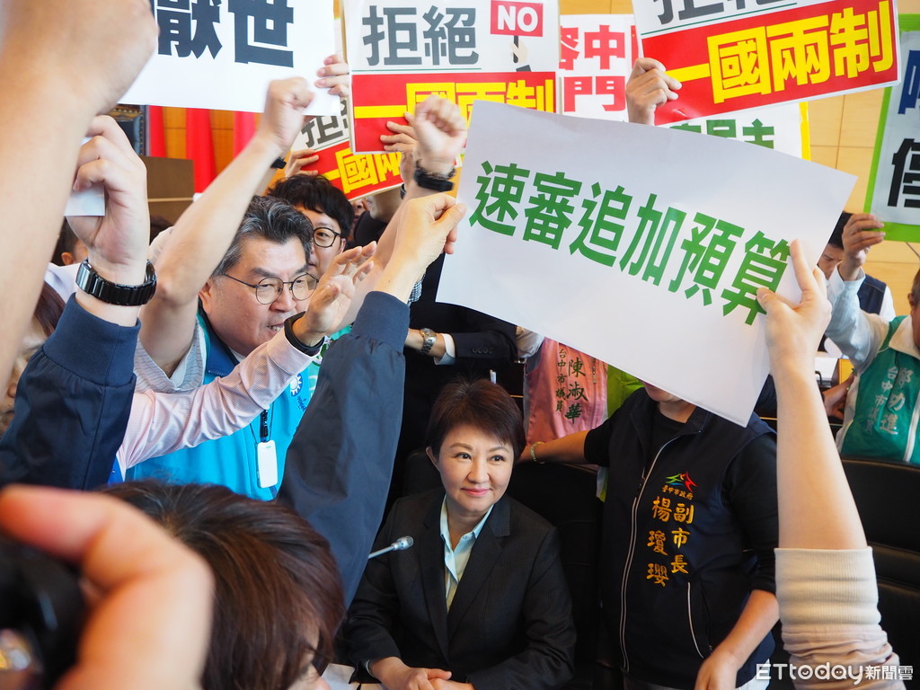 台中市議會17日進行2019年第一次追加(減)預算一讀會,會議一開始,民進黨籍市議員林德宇首先發言,要求台中市長盧秀燕針對日前統獨兩派要在台中市遊行表態立場,不料林尚未說完,國民黨籍議員也開始發言,要求速審預算,雙方一度包圍著盧秀燕,場面火爆,但盧一直保持著微笑,表情超淡定。