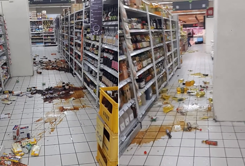 花蓮18日下午1點01分左右發生規模6.1大地震,深度僅18.8km,花蓮縣震度高達7級,上下搖晃時間超過10秒,台北捷運宣布全線停駛2小時。地震當下,一名男網友剛好在家樂福逛街,櫃上的貨物全灑在地上,液體、粉末全噴出,嚴重到幾乎把路都掩蓋掉,根本無法行走。對此,家樂福花蓮店向《ETtoday新聞雲》表示,全店人員已在第一時間協助顧客避難,但基於安全顧慮,才沒有立刻回到現場清潔維護。