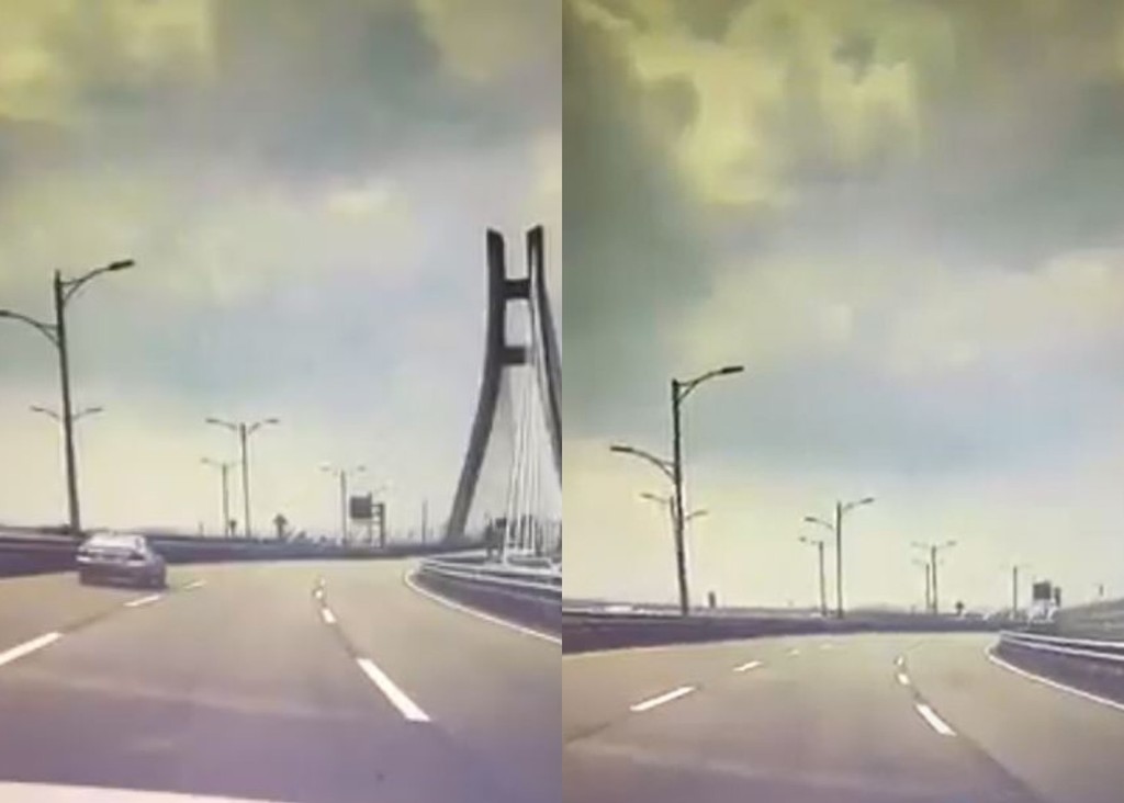 ▼網友在臉書爆料,地震時他剛好行經新北環快道路,而路上的路燈搖晃嚴重。(圖/翻攝臉書爆料公社)