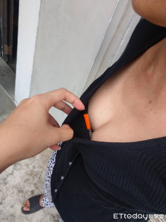 ▲吳姓女子涉嫌吸毒,遇到警察盤查,竟然將針筒塞在乳溝內躲避查緝。(圖/記者賴君欣翻攝)