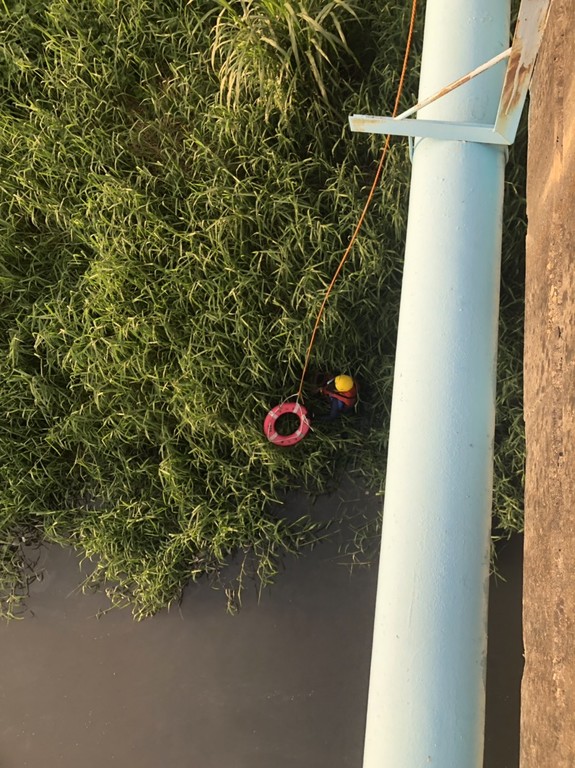 據瓦磘村長施易昌表示,抵達現場時即看到距橋面約10公尺高的水面上有1民眾載浮載沉,消防員準確地丟下彰化縣消防局於岸邊設置的救生圈,讓於水中的盧姓女子抓抱,並緩拖行至較安全水域,將盧姓女子從深陷1公尺泥濘與比人高芒草堆中,奮力將人拖行至岸邊,途中盧姓女子情緒仍然非常激動,不斷放聲大哭,還一直掙脫救援隊員,甚至欲再往水中跳去,此時宋姓隊員即運用消防員式將盧姓女子迅速扛背上肩往水泥平地跑去,將盧姓女子安全搬運至救護車送醫。
