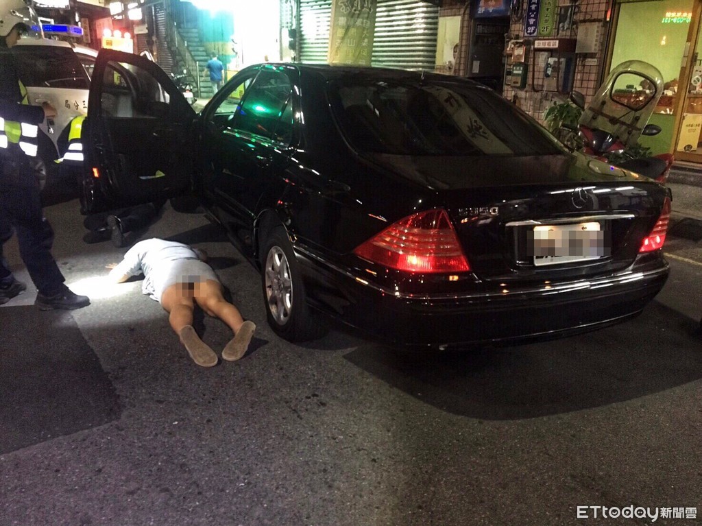 ▲ 黑白郎君暗夜勇尬狂賓士,警開槍逼停,短裙妹趴地露長腿。(圖/記者郭世賢翻攝,下同)
