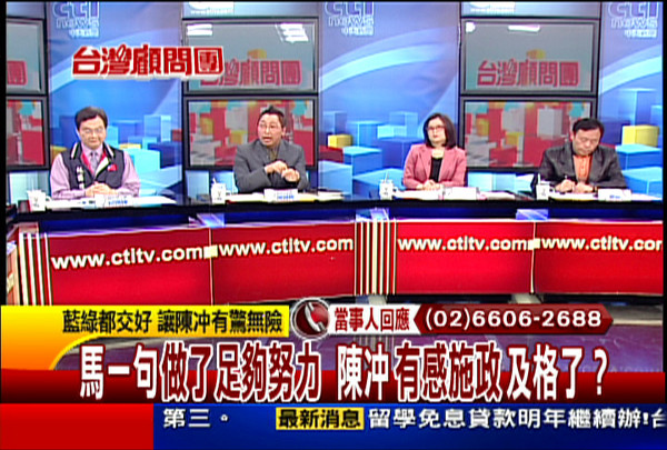 時事評論員蔡玉真也說,陳冲的財經專業是備受期待的,但結果卻「陰溝裡翻船」。證所稅影響股市大跌、慰問金被罵是亡黨政策、未來還有能源稅要課,到時油價漲到一公升50元,「陳冲還做得下去嗎」?不過,蔡玉真也以「極品」來形容陳冲,因為沒有一位財經官員跟他一樣,能藍綠通吃,在國民黨及民進黨執政時,都受重用。