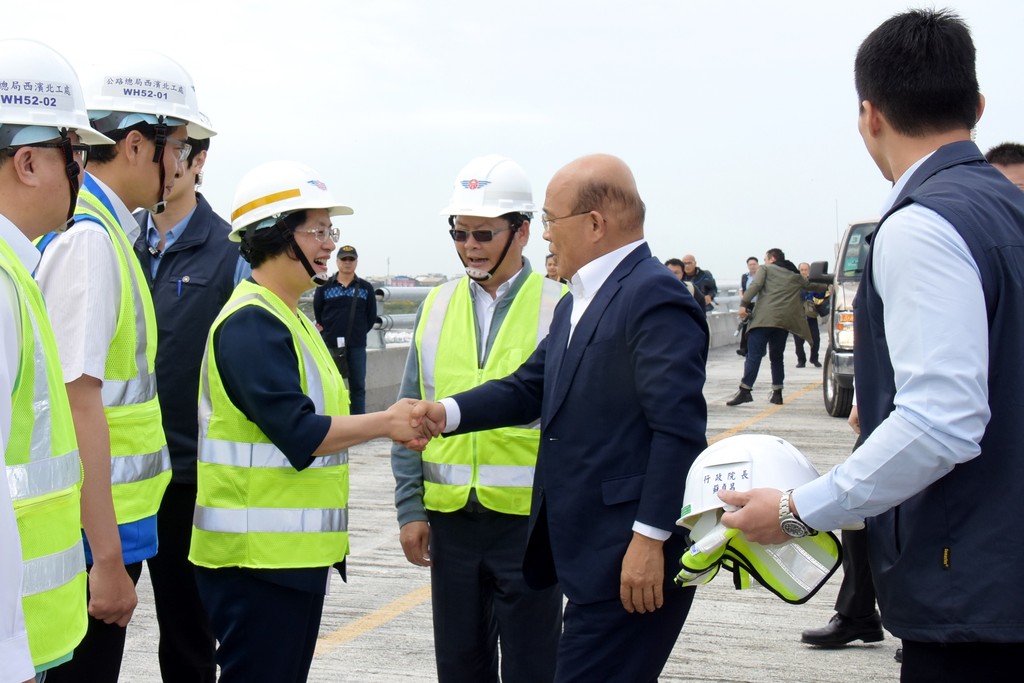 ▲行政院長蘇貞昌在視察彰化地方建設時說,郭台銘選總統,最羨慕的應該就是馬雲。(圖/彰化縣政府提供,以下同)