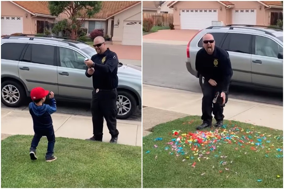 ▲警察爸爸準備給5歲兒子生日驚喜,下秒竟然自己GG了。(圖/翻攝自YouTube)