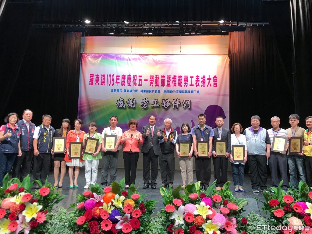 羅東鎮公所為慶祝五一勞動節並感謝勞工朋友對社會的貢獻,20日上午9時在羅東鎮展演廳,舉行「羅東鎮108年度慶祝五一勞動節暨模範勞工表揚大會」,共表揚模範勞工共123位。