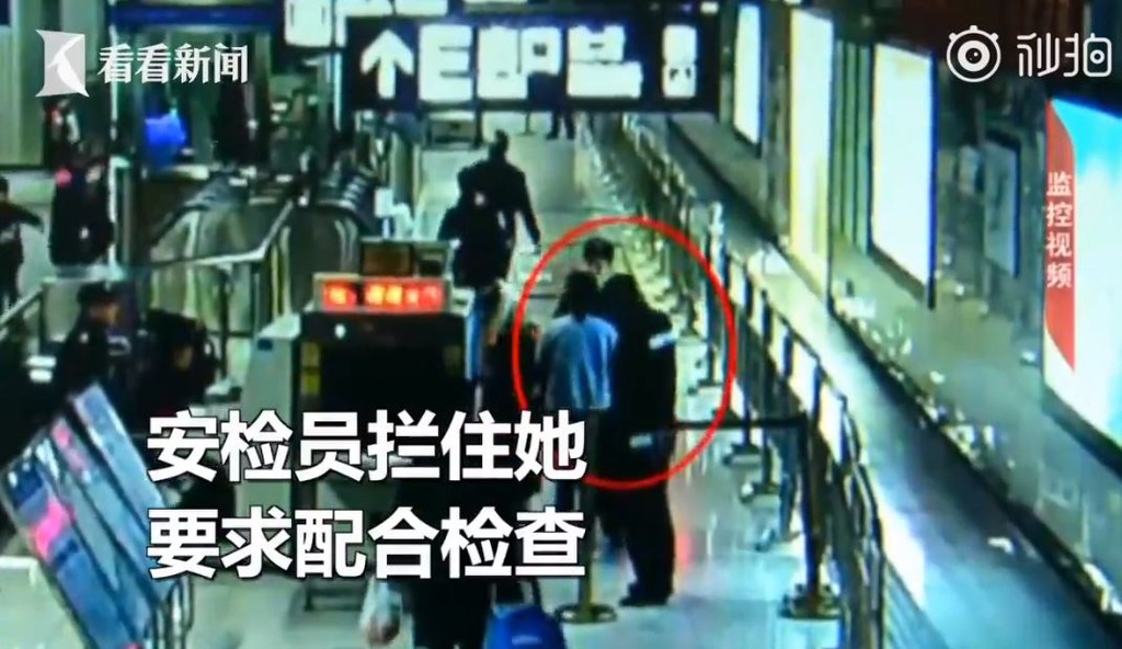據《看看新聞》報導,現場畫面顯示,一名身穿藍色衣服的女子想要繞過安檢,直接進站,但被安檢員攔下要求檢查。她先是以沒有攜帶危險品為由拒絕,其後又指怕吃了過安檢機的食物會中毒,說完還強行推開安檢員。