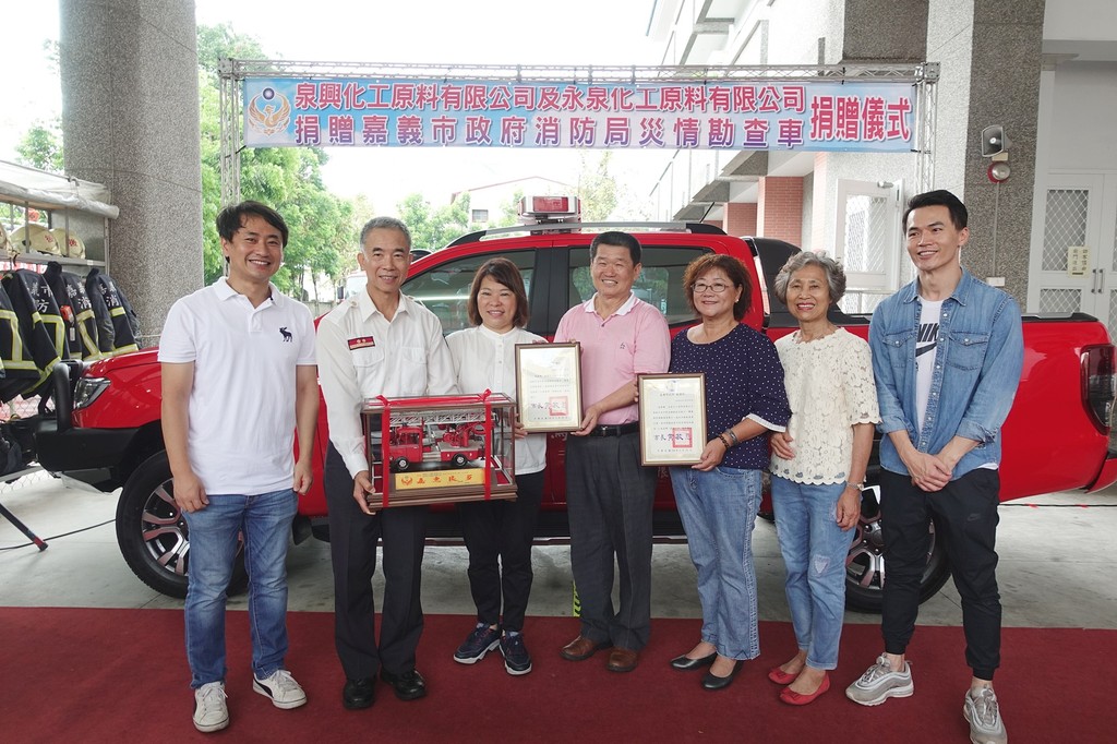 嘉義市後湖工業區泉興化工原料有限公司董事長馬金泉,長期支持消防工作,擔任消防局後湖義消分隊顧問,5年前以其雙親名義捐贈救護車,21日再捐出一部市值約170萬的新式運動皮卡型式災情勘查車,由市長黃敏惠代表受贈。消防局同時舉辦消防車輛親子體驗活動,黃敏惠市長和小朋友一起體驗空中救助斜降、學習CPR心肺復甦術,現場氣氛溫馨。
