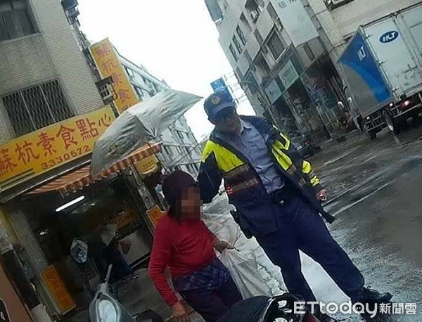 ▲老婦雨中迷途,暖警親送返家。(圖/桃園警分局提供)