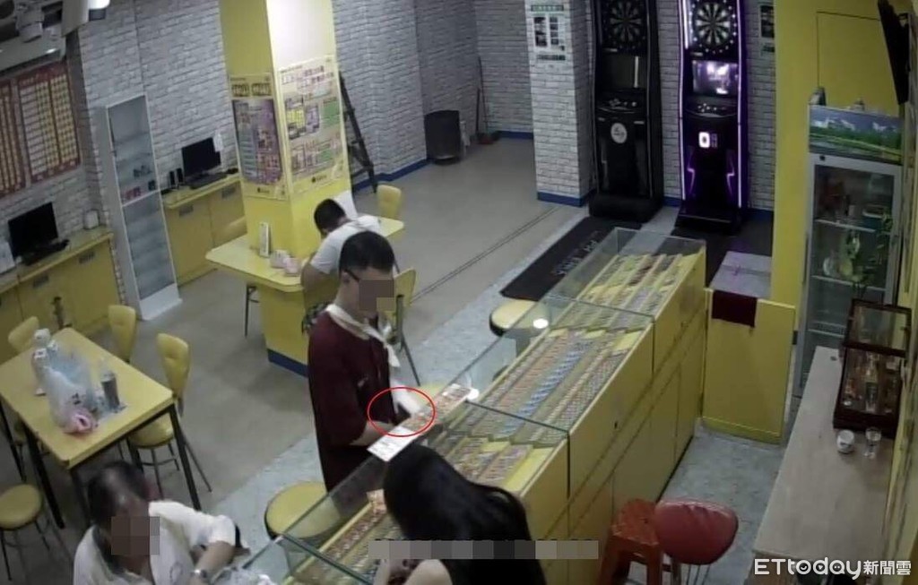 ▲蔡男趁店員不注意將彩券偷走。(圖/記者吳奕靖翻攝)