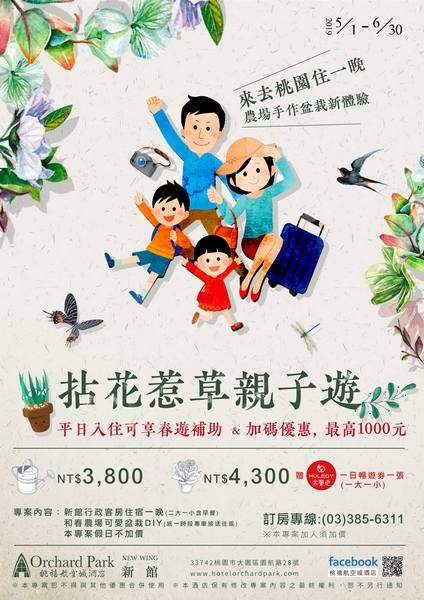 ▲郭元益配合旅館業者免費贈送旅客「桃園飛吧/手工餅乾」及入園免費、DIY第二份半價及伴手禮85折的優惠券。▼桃禧航空城酒店結合溪海花卉園區的農場業者推出「拈花惹草親子遊」。(圖/市府提供)