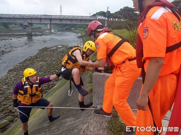 該名女子表示,因看見黑色小狗受困岸際,隨即下去救狗,未料因該處地形不易攀爬,造成自身受傷受困。所幸獲岸巡及消防人員救護平安脫險。