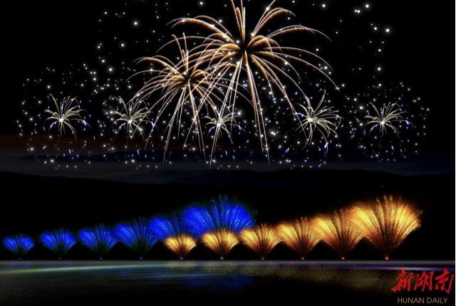 ▲「中國航天日」焰火晚會模擬效果圖。(圖/記翻攝自新湖南客戶端)