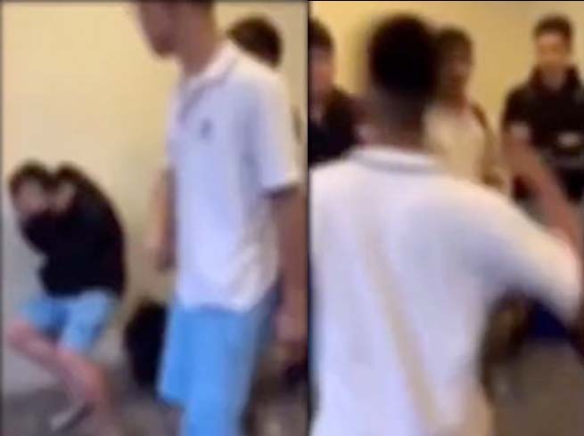 北市內湖區1所高中在23日傳出霸凌事件,1名平頭著水藍色短褲的高中生,疑似不滿另名著黑色外套的高中生「不乾杯」,就朝對方頭部猛灌1拳,造成黑外套高中生先是撞上牆壁,接著抱頭倒地,剪接過的影片也被同學私訊給「爆料公社」。